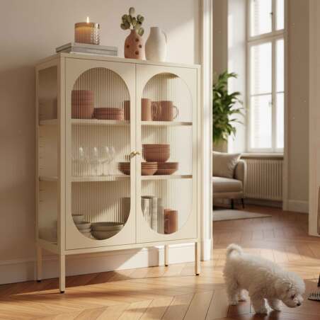 - Descrizione Credenza in metallo e vetro con 2 ante, 80 cm