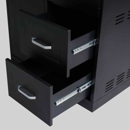 Trasforma i tuoi pasti all'aperto con questa cucina da esterno in 3 pezzi che unisce funzionalità ed eleganza. Dotato di fornello a gas integrato, è progettato per facilitare la preparazione dei vostri pasti all'aperto. Il mobile cucina a gas ha un'anta a sinistra, dotata di cerniera soft-close, perfetta per contenere una bombola di gas da 10 kg, sia butano che propano. Con due bruciatori in ottone indipendenti puoi preparare più piatti contemporaneamente. La griglia di cottura removibile facilita inoltre la pulizia e la manutenzione. Sul lato destro, due cassetti con guide a chiusura ammortizzata offrono un pratico spazio per riporre utensili e accessori da cucina. Completata da due mobili contenitori, questa cucina promette generosi spazi contenitivi con un modulo cassettiera composto da tre cassetti dotati anche di guide soft-close. Realizzata in robusto acciaio inossidabile verniciato a polvere, questa cucina è costruita per resistere agli agenti atmosferici e alla corrosione, garantendo durata e longevità. Misurando 96 cm di altezza, 81 cm di larghezza e 66 cm di profondità, si adatta facilmente a diversi spazi esterni. I piedini regolabili consentono un'installazione stabile, anche su superfici irregolari. Regalati indimenticabili momenti di convivialità con questa cucina da esterno che unisce prestazioni ed estetica. Non è possibile collegare le nostre cucine da esterno Memphis al gas di città.