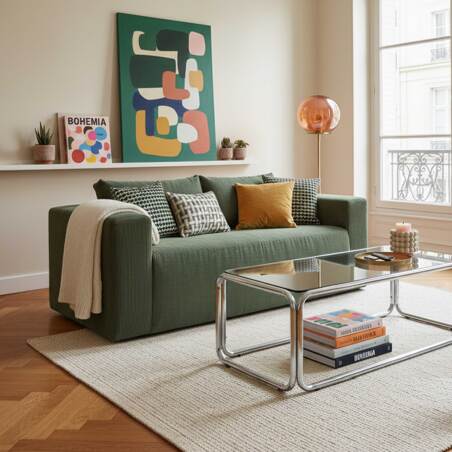 - Descrizione Divano 2 posti in tessuto a coste con cuscini