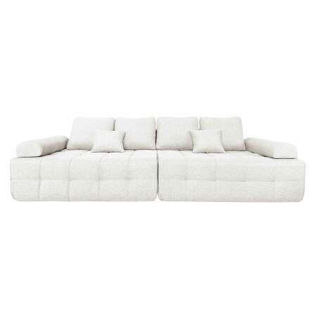 Il divano SNUGGY a 4 posti è composto da due moduli modulari che si assemblano facilmente per creare uno spazio accogliente e spazioso (L282 x P112 x H65 cm) con un'altezza di seduta di 41 cm. La sua struttura, che combina schiuma ad alta resilienza (32 kg/m³) e molle insacchettate con una base antiscivolo, garantisce un comfort duraturo e un'eccellente stabilità. Rivestito in un tessuto effetto lino da 340 g/m² (95% poliestere, 5% nylon), dona un tocco elegante e naturale ai tuoi interni. Il cuscino, lo schienale e le fodere decorative sono sfoderabili e lavabili per una facile manutenzione. Con una larghezza di 222 cm senza braccioli e un'altezza dei braccioli di 56,5 cm, questo divano a 4 posti offre un comfort ottimale per tutta la famiglia. Altri moduli SNUGGY sono disponibili anche separatamente, permettendoti di personalizzare e adattare il tuo spazio in base alle tue esigenze.