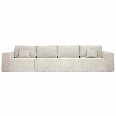Il set modulare HECTOR è composto da un divano a 2 posti in tessuto completato da due moduli centrali individuali, offrendo una seduta generosa e modulare per 4 persone. Il divano a 2 posti misura circa 200 cm di lunghezza, 100 cm di profondità e 78 cm di altezza con i cuscini, mentre i due moduli centrali aggiungono 150 cm di larghezza, per una lunghezza totale di 350 cm, con una profondità e un'altezza identiche di 100 cm e 78 cm. Le sedute e gli schienali sono imbottiti con schiuma ad alta densità (32 kg/m³) che garantisce un supporto solido e confortevole, con un'altezza della seduta di 40 cm, uno schienale di 78 cm sul divano e di 56 cm sui moduli centrali. Il rivestimento in tessuto 100% poliestere certificato Oeko-Tex, con una grammatura di 260 g/m² per il divano e adatto ai moduli, garantisce morbidezza, resistenza e durata. I rivestimenti sfoderabili e lavabili degli schienali e dei cuscini ne facilitano la manutenzione, mentre il fondo antiscivolo dei moduli centrali garantisce una stabilità ottimale. Consegnato sottovuoto, questo set combina design moderno, comfort e funzionalità, integrandosi perfettamente nel vostro arredamento.