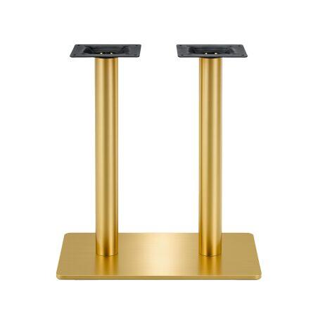 Questa gamba per tavolo doppia in metallo alta 70 cm unisce robustezza ed eleganza. La colonna in acciaio inox Ø 76 x T 1,35 mm poggia su una base stabile di 45 x 45 cm a croce o 25 x 25 cm a quadrato, dotata di una copertura in acciaio inox e di una piastra interna in acciaio. Anche la piastra superiore è in acciaio, garantendo un fissaggio solido del piano del tavolo. Per una perfetta stabilità su tutte le superfici, è dotata di 5 terminali neri regolabili.