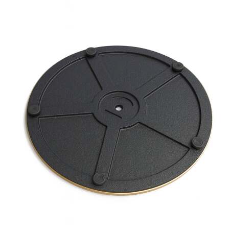 La base per tavolo MONTAIGNE in metallo e ghisa, alta 72 cm, coniuga robustezza ed eleganza con la sua base compatta da 40 cm di diametro. La colonna cilindrica da 76 mm di diametro, realizzata in metallo verniciato a polvere nero con finitura opaca spazzolata, è impreziosita da un dettaglio in oro lucido alla base, che aggiunge un tocco sofisticato. La croxiera e la base in solida ghisa garantiscono una stabilità ottimale, mentre la copertura in acciaio inox dorato lucido ne esalta l’estetica raffinata. Per una perfetta adattabilità a tutti i tipi di pavimento, questa base per tavolo è dotata di quattro piedini regolabili, che garantiscono funzionalità ed eleganza.