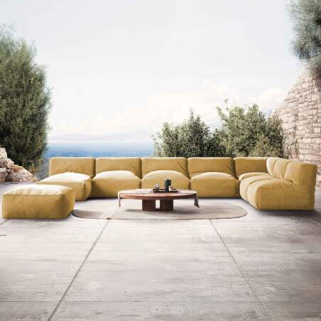 Divano modulare da esterno 7 posti con 5 poltrone, 1 poltrona angolare, 1 chaise longue e 1 pouf