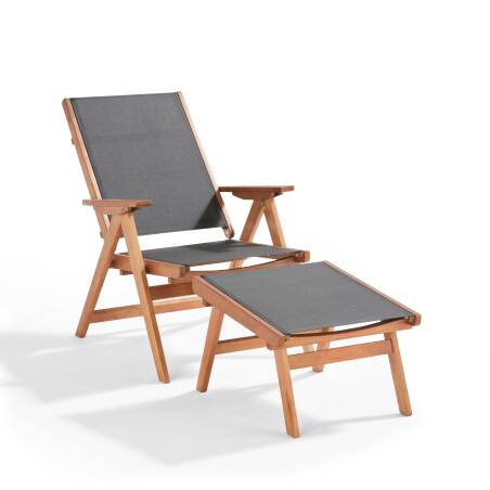 Stai cercando un modo per goderti le miti serate estive stando comodamente seduto? Allevia la zona lombare optando per questa poltrona relax Sisco in legno di eucalipto FSC® 100%, due prodotti che mettono il comfort e l'ergonomia al centro delle preoccupazioni. Dotate di poggiapiedi in legno di eucalipto, queste due poltrone ti offrono la postura perfetta per alleviare i muscoli dopo un'estenuante giornata di lavoro. Aumentando la profondità della seduta con quella del poggiapiedi, le poltrone Sisco vi offrono la possibilità di allungare le gambe qualunque sia la vostra altezza. Inoltre, per ragioni di flessibilità, potrai, in pochissimo tempo, usufruire delle tre posizioni dedicate. Lungi dal migliorare sensibilmente il vostro comfort, si adattano anche ai vostri gusti. Inoltre, la struttura di queste poltrone lounge è realizzata in legno di eucalipto, con finitura in teak naturale. La combinazione di questi due tipi di legno ti garantisce di beneficiare di mobili da esterno durevoli... e con un'estetica unica!
