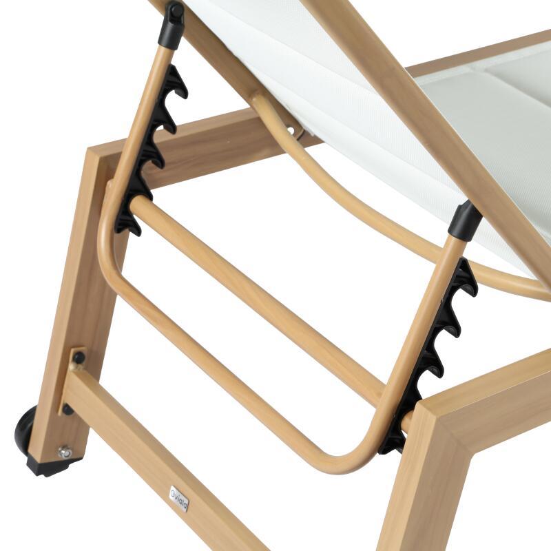 - Descrizione Set di 2 lettini prendisole in alluminio effetto legno con ruote, reclinabili in 5 posizioni