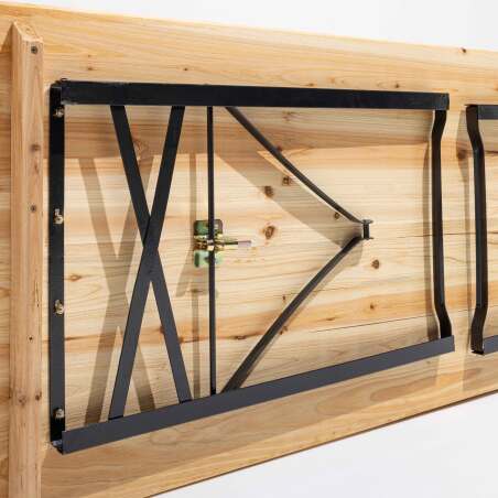 Set tavolo e panche pieghevoli in legno, pratico, robusto e facile da usare. Questo set è composto da un tavolo pieghevole in pino verniciato da 180 x 60 cm, accompagnato da due panche pieghevoli abbinate da 180 x 25 cm. Il legno accuratamente trattato e la struttura in acciaio con finitura epossidica gli conferiscono una notevole robustezza, resistendo efficacemente a urti e graffi. Progettato per durare, questo set supporta fino a 200 kg sul tavolo e 350 kg per panca, garantendo una seduta sicura anche durante gli eventi festivi. I fermi con serratura assicurano un'eccellente stabilità durante l'uso. Perfetto per ospitare fino a otto persone, è adatto sia per ricevimenti al chiuso che per un uso occasionale all'aperto. In caso di maltempo prolungato, si consiglia di riporre il set in un luogo riparato. Facile da piegare e riporre, unisce funzionalità e facilità d'uso per tutti i vostri momenti di condivisione.