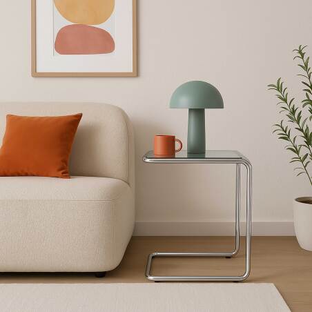 Tavolino laterale in vetro temperato quadrato 50x46 cm