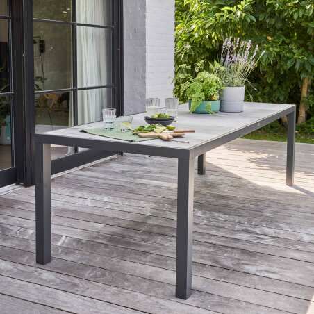 - Descrizione Tavolo da giardino in ceramica effetto legno grigio + 10 posti