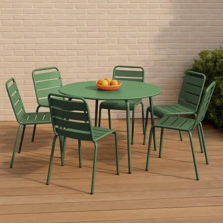 Tavolo da giardino rotondo in metallo Ø120 cm e 6 sedie