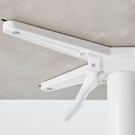Tavolo da giardino quadrato inclinabile in alluminio bianco e HPL 70x70 cm e 2 sedie in metallo